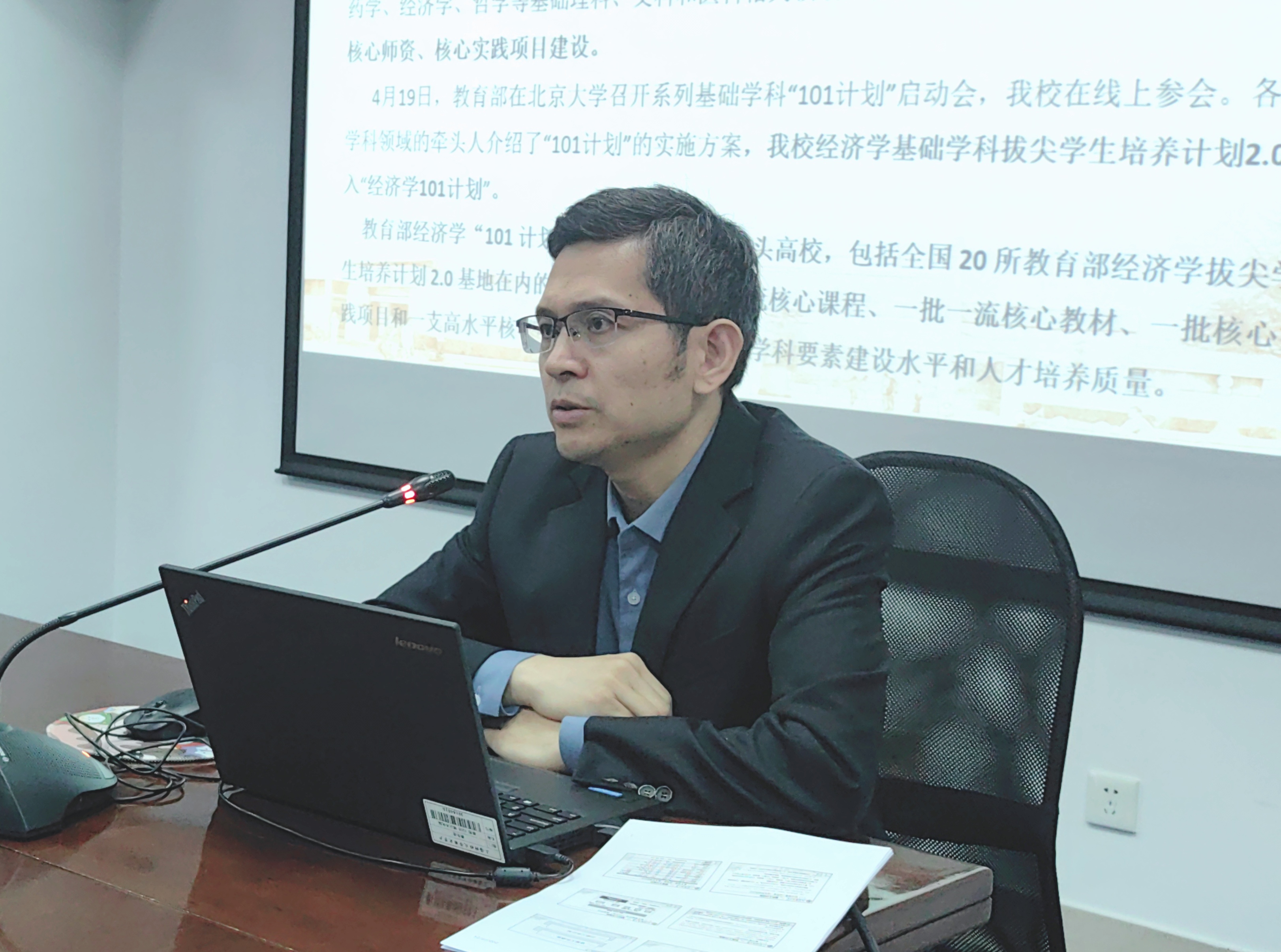 会上,四家学院首先进行交流发言。经济学院常进雄副院长带来了题为《基层教学组织:实践,效果与问题》的精彩发言,公共经济与管理学院冯苏苇副院长则以《书卷为舟 协同共治——公共经济与管理学院经典阅读活动工作汇报》为题进行交流发言,马克思主义学院刘洋副院长围绕《以“大思政课”建设推动思想政治理论课改革创新》的主题同与会者进行了充分交流,人文学院中文系陈成吒主任则对人文学院落实全校通识教育体系建设与教学实践的情况进行了汇报。