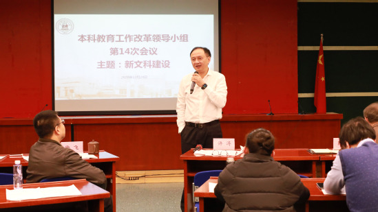 12月24日上午,学校组织召开本科教育工作改革领导小组第14次会议,围绕“十大行动计划2.0”整体进展情况,并重点聚焦“新文科”建设的思考与行动进行交流讨论。许涛书记及其他校党政领导班子成员,两办、教务处、人事处、教师工作部、发展规划处、研究生院、信息办、教师教学发展中心、国际处、后勤处等相关职能部门和各学院主要负责人、教学副院长、教务秘书参会。会议由常务副校长徐飞主持。