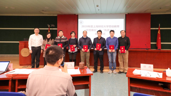 会上,还为学校近期评选出的2020年度上海财经大学劳动教育“示范单位”及“先进个人”颁发奖状,以表彰他们在劳动教育行动和实践活动中的突出表现。由许涛书记为“示范单位”代表和先进个人颁奖。