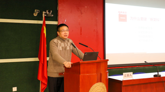 随后,他从论域拓展、价值重塑、话语主导、交叉融合、研究范式五个维度展开论述,阐释了“新文科”新在哪里。他强调,新文科相对于新工科、新医科和新农科而言,最大的区别在于它的外延边界大大地拓展。新文科包含文、史、哲、经、管、法、教育学、艺术学八个学科门类更强调交叉融合。建设“新文科”,可以从探讨人文社科所涉对象的规律性,转向对社会价值观的重塑,找回人类的“意义世界”和“价值空间”,为理工科甚至为国家和社会提供指导思想和价值选择。依靠不断丰富的研究方法和主流研究范式,运用现代科技、信息技术、人工智能,特别是要运用算法,将文科的定性方法与定量方法相统一,彰显新文科的科学性。