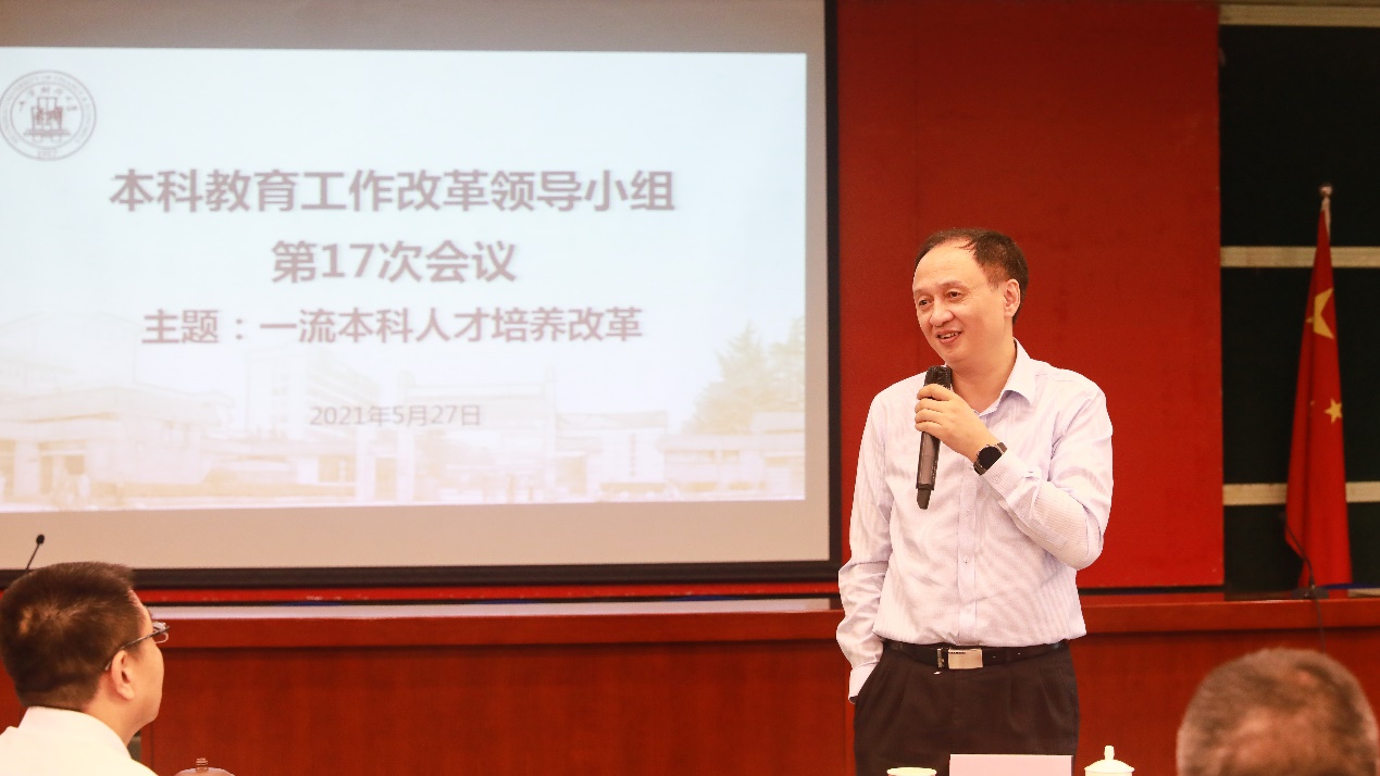 5月27日上午,学校组织召开本科教育工作改革领导小组第17次会议。本次会议上,各责任部门汇报了“十大行动计划2.0”整体进展,以“一流本科人才培养改革”为会议主题进行了交流讨论。徐飞常务副校长主持,校党委书记许涛,校党政领导班子成员,两办、教务处、人事处、科研处、党委教师工作部、发展规划处、财务处、学生处、党委学生工作部、研究生院、教师教学发展中心、就业指导中心、教育技术中心、信息办、后勤处等相关职能部门和各学院主要负责人参会。