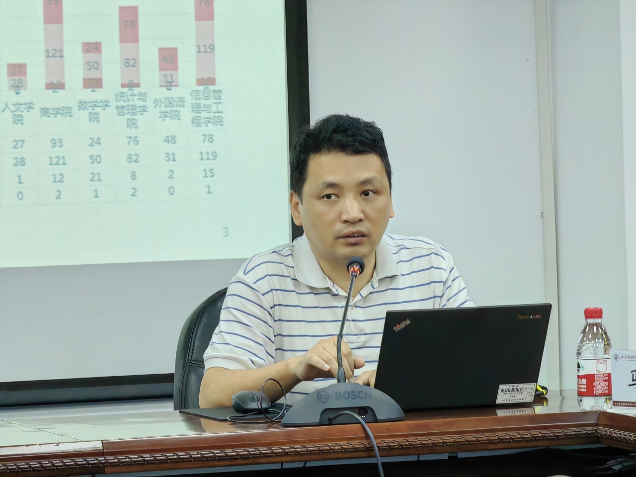 教务处江晓东副处长对专业与课程建设工作、通识教育工作进行了通报。他重点通报了教育部教指委推荐工作、教材建设、专业申报、一流课程建设、课程思政等方面的工作。他指出,为积极落实国家教育数字化战略行动,促进智能技术与教育教学的深度融合,学校已启动了知识图谱课程和智慧课程这两类数智课程建设工作,进一步推进我校本科课程建设改革。随后,他围绕几项重点工作进行布置:鼓励学院建设与打造一批具有代表性的精品通识课程;希望充分发挥教研室作用,开展丰富多样的教学教研活动,激发教学活力,推动课程与教材创新建设,助力本科人才培养质量的提升。