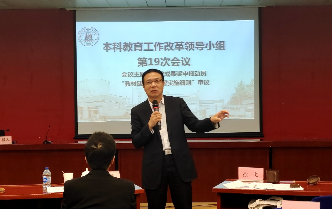 10月28日上午,学校组织召开本科教育工作改革领导小组第19次会议。本次特别邀请了复旦大学副校长徐雷教授带来题为“抓住主题、破解问题、推广示范,做好教学成果奖的申报”的专题讲座。会议围绕“教学成果凝练与教学成果奖申报”、“教材建设与管理实施细则审议”两项议题进行了交流讨论,同时,由各责任部门汇报“十大行动计划2.0”整体进展。徐飞常务副校长主持,校党政领导班子成员,教务处、科研处、党委教师工作部、发展规划处、财务处、党委学生工作部、学生处、研究生院、教师教学发展中心、教育技术中心、信息办、后勤处等相关职能部门和各学院主要负责人参会。