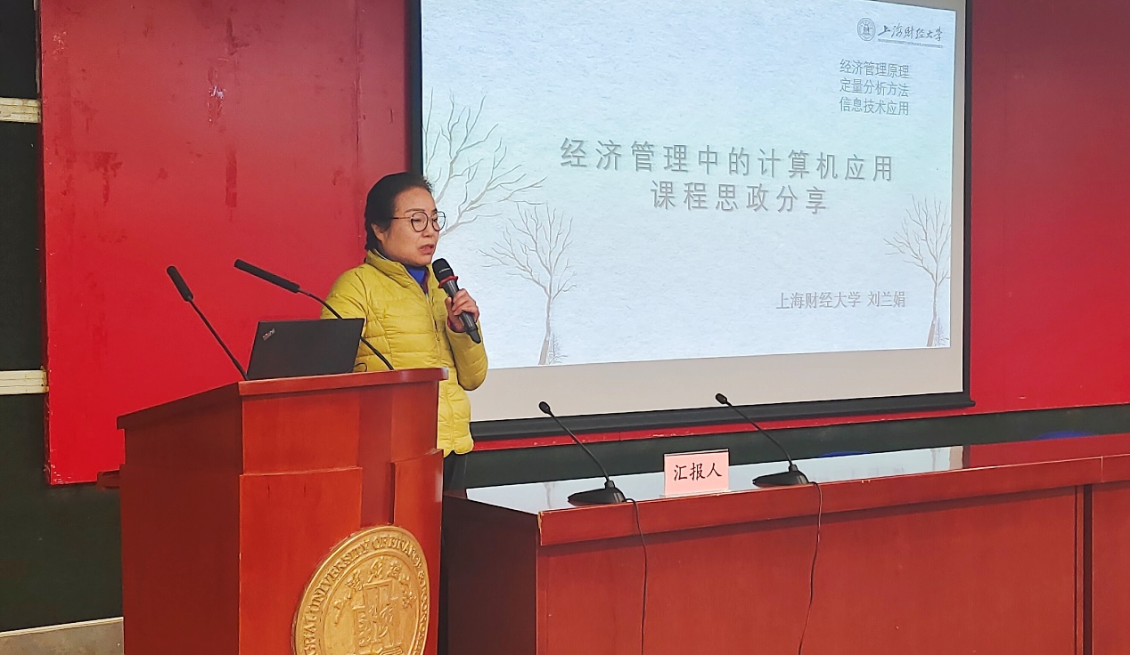 交流讨论环节中,与会人员踊跃发言,刘兰娟副校长带来了精心准备的“经济管理中的计算机应用课程思政分享”,由点及面,用一个个鲜活生动的案例表达了如何做好专业课程思政,并指出怎么选拔教师、怎么培养教师才是落实好课程思政的关键所在。她表示,教师自身思想政治水平的提高对于实施课程思政至关重要,在教学过程中,有很多思政元素其实是来源于学生的,这些元素教师应当好好利用,并且要做到启发和引导学生进行主动性思考。