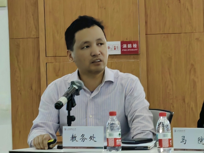 教务处江晓东副处长对专业与课程建设工作、通识教育工作进行了通报。他首先汇报了专业建设、课程建设、教材建设等近期重要工作,并对相关后续工作进行了布置。提醒2026年需要申报新专业的学院今年务必做好新专业申报预备案。他提到,课程思政建设全面铺开,习近平经济思想进专业课程的试讲工作已顺利展开,涉及多个专业的核心课程。接着,他对通识教育中心工作进行了介绍。学校正在积极构建“AI+”数智力通识课程体系。教研室建设方面,通过开展教研室设置与调整工作,重构微观教学体系,激发“院-系-教研室-课程组”教师发展体系活力,发挥其在教学改革与教学研究方面的核心作用。