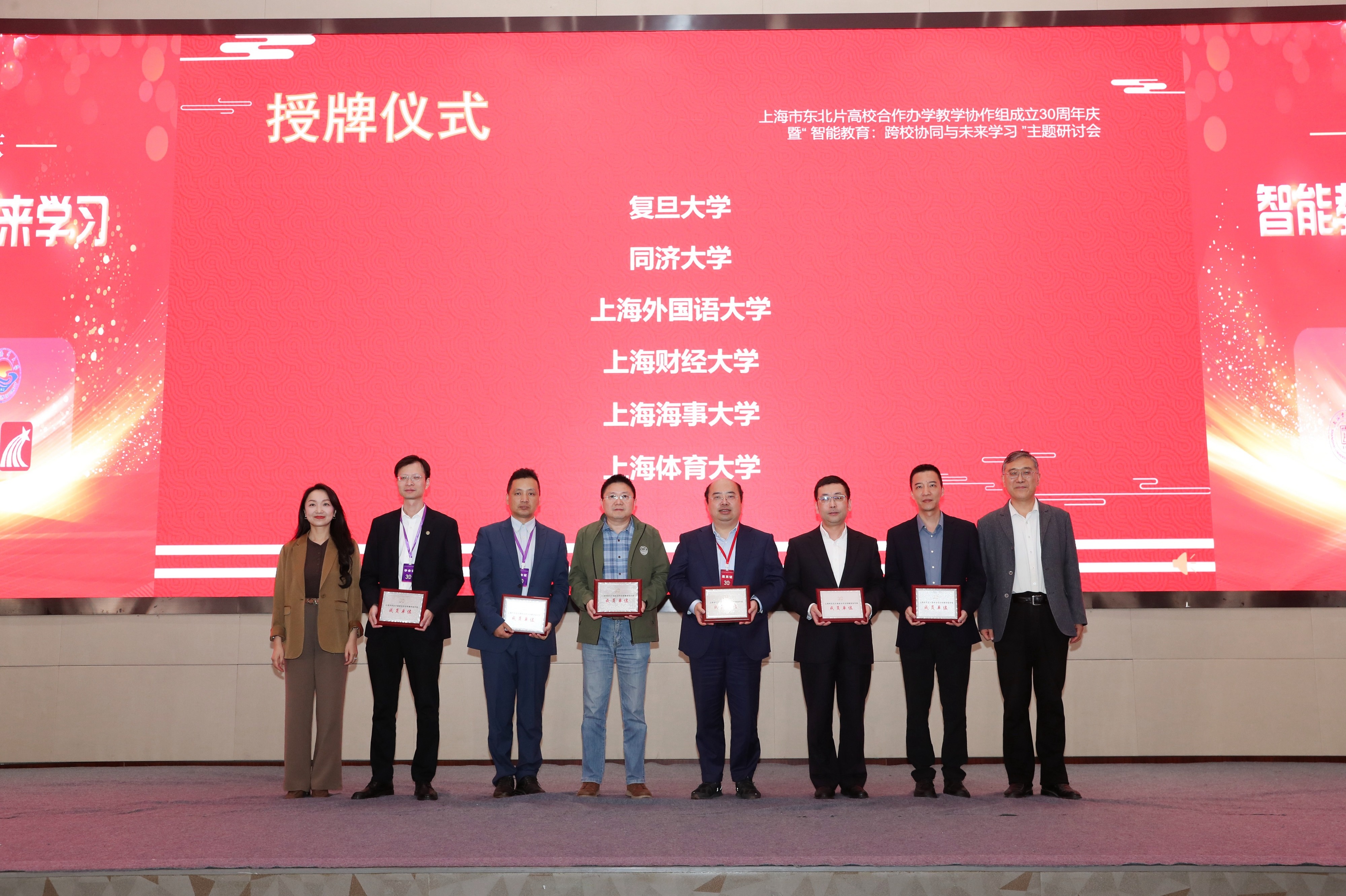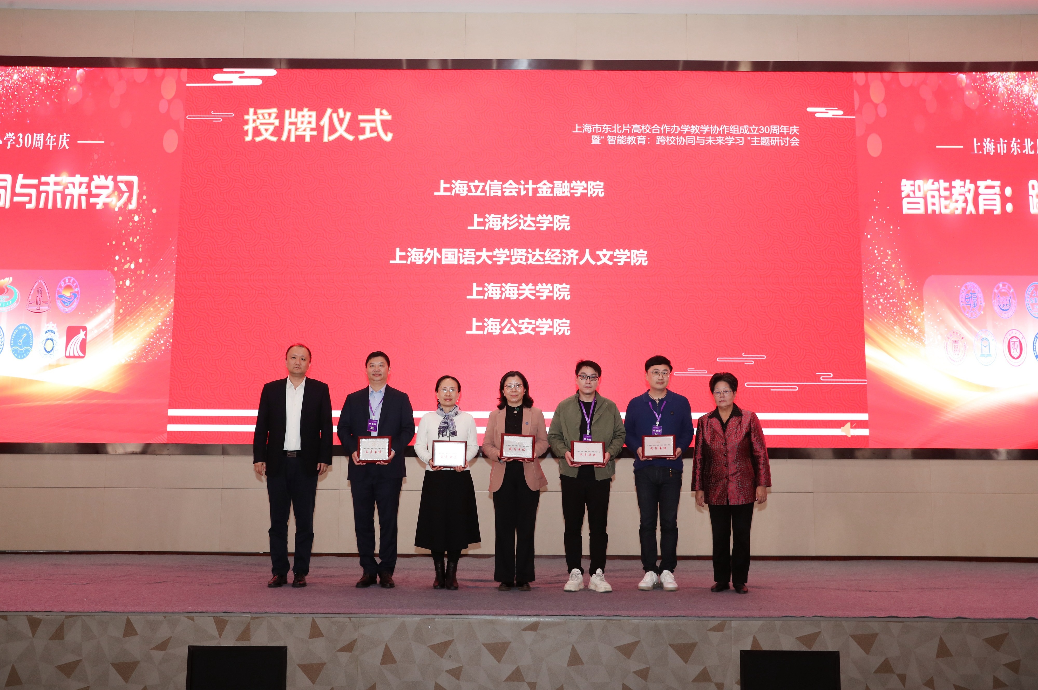 11月15日,上海市东北片高校合作办学教学协作组成立三十周年庆暨“智能教育:跨校协同与未来学习”主题研讨会在学校举行。上海市教委四级调研员孔莹莹,复旦大学副校长周磊,上海财经大学副校长靳玉英、校长助理兼教务处处长夏纪军,上海海洋大学副校长江敏,上海电力大学副校长杨宁,上海杉达学院副校长蒋凤瑛等出席会议。来自33所高校的教务处领导、工作人员及超星集团嘉宾约150人参会,共同回顾了联合办学三十载光辉历程,擘画未来教育发展新图景。开幕式由夏纪军主持。