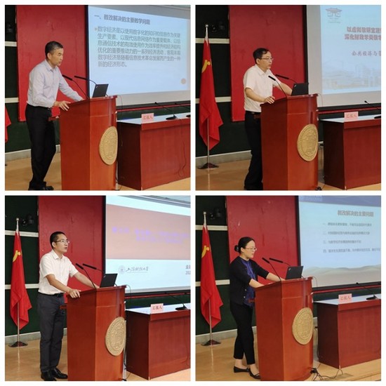 经济学院周亚虹院长以“新文科背景下培养适应数字经济时代的经济学复合型拔尖人才的探索实践”为题,分享了经济学院在新文科背景下教改解决的主要教学问题、数字经济的蓬勃发展对我国经济学拔尖人才培养提出的新挑战,以及经济学院在解决上述教学问题的主要举措。公共经济与管理学院刘小兵院长以“以虚拟教研室建设为契机,深化财政学类专业教学模式改革”为题,详述了财政学类专业教育现状、改革目标及下一步的建设思路。金融学院朱小能副院长围绕新时代、新文科、新金融,带来了题为“‘科技•创新•绿色•开放’理念引领的人才培养改革”的分享。商学院董静副院长分享了国际经贸与商务人才培养的举措和规划,学院将更新课程体系,改革培养模式,充分发挥学科优势,提升人才数字化能力,以应用经济学一流学科建设为契机,激励教师增加对本科教学投入。