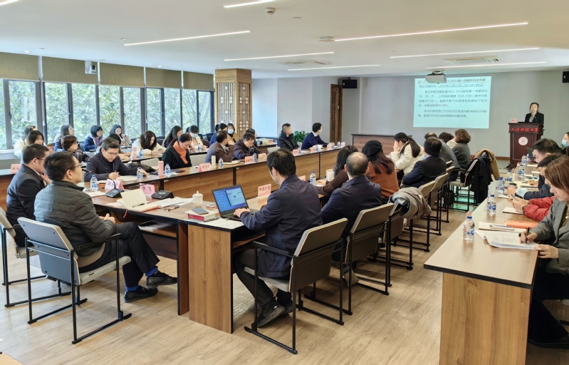 教务处江晓东副处长针对专业与课程建设工作、通识教育工作进行了通报,就教材审核工作,各类教学相关项目的申报与结项,以及2023年新专业申报进行详细说明。通识课程方面,本学期开课门次174,选课率73.0%。他指出,今后通识选修类课程建设主要任务将从数量增长向质量提升进行转变, “一院一课”通识金课建设、第二届“阅读之星•悦读达人”评选、第四届“育衡杯”通识课程论文大赛、“通识讲堂”系列讲座活动等都在有序推进。